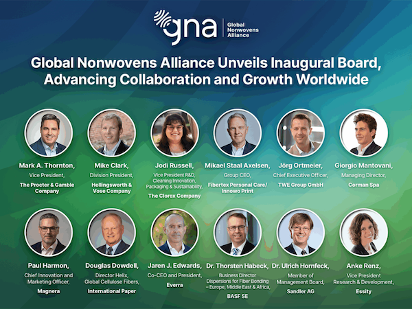 “Esta Junta refleja la escala global y la diversidad del sector de los no tejidos”, afirmó Dogru, director general de EDANA. “Al combinar perspectivas de todas las regiones y mercados, la GNA está preparada para establecer una agenda con visión de futuro que dé prioridad a la sostenibilidad, la innovación y el crecimiento a largo plazo de nuestra industria en todo el mundo”.