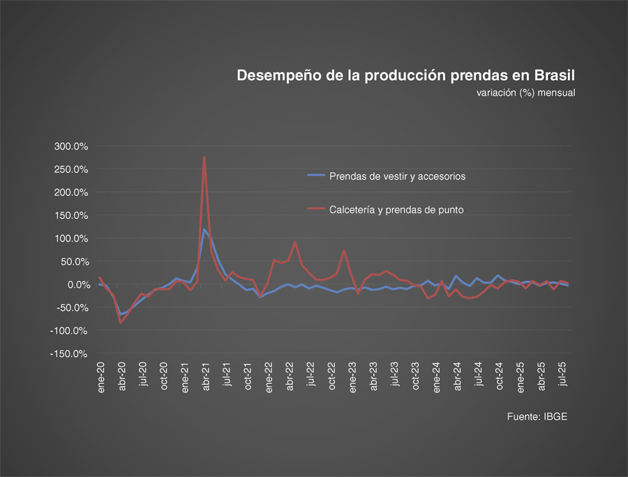 No obstante, detrás de esa aparente fortaleza se esconde una paradoja preocupante. Según el Instituto Brasileño de Geografía y Estadística (IBGE), los tres grandes eslabones de la cadena — fibras, textil y confección — no crecen de manera armónica, lo que frena la eficiencia del modelo de full package (paquete completo, de la fibra a la prenda).