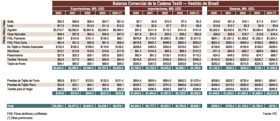 La balanza comercial de Brasil ha mostrado un importante crecimiento en la importación de productos terminados, prendas y textiles para el hogar que acumularon un déficit de US$2.213 millones, imponiendo una importante presión para la cadena de valor completa en el mercado doméstico.