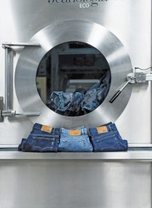 Desde el área de Diseño y Desarrollo de Producto, OGGI ha impulsado una transformación orientada a la sostenibilidad, sin perder de vista la identidad de la marca. En los últimos años, OGGI Jeans ha avanzado en la incorporación de prácticas y procesos de menor impacto ambiental integrando tecnologías como ozono, láser y enzimas. Estas alternativas permiten obtener resultados de alta calidad con una huella ambiental menor en comparación con procesos convencionales. Aunque su implementación es aún gradual y depende de las capacidades de cada unidad productiva, representan un paso importante dentro del compromiso de OGGI por fortalecer una cadena de valor más responsable.