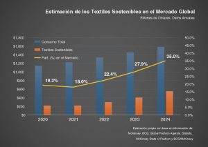 De acuerdo con reportes de Textile Exchange y McKinsey, el mercado global de textiles está experimentando una transformación acelerada. En 2024, las prendas producidas bajo esquemas de sostenibilidad representaron aproximadamente el 35% del total, con una tasa de crecimiento anual cercana al 30%.