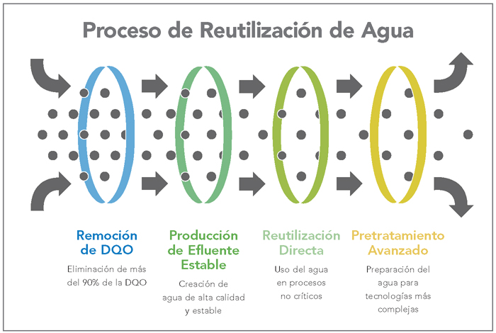 Qué Hace: Está remueve más del 90% de la Demanda Química de Oxígeno (DQO) y produce un efluente estable y de alta calidad, adecuado para reutilización directa en procesos no críticos o como pretratamiento para tecnologías avanzadas.